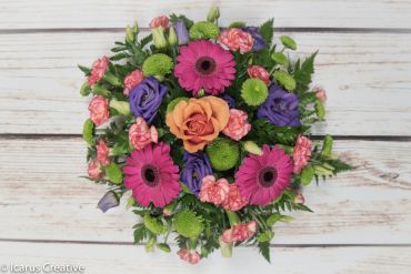 A stunning posy arrangement in oasis made with vibrant colours.