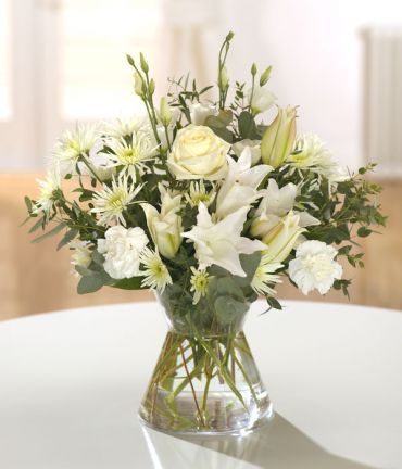 Bouquet using the finest white, ivory and cream flowers. Please note: Vase not included.